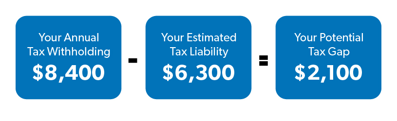 Now it’s time for some simple subtraction! Just take your annual tax withholdings and subtract your estimated tax liability. Using the example above, you’re potentially sending $2,092.50 more to the IRS than you need to. It’s time to fix that!
